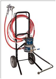 На рис. 2 изображены различные модификации установки TRITON фирмы GRACO (США). В комплект установки входит пневматический краскораспылитель Delta Spray (Delta Spray HVLP), диафрагменный насос с пневмоприводом серии TRITON 308, регулятором давления сжатого воздуха, подаваемого на распыление и на привод насоса (подачу ЛКМ), сдвоенные шланги (воздушный и материальный) длиной 7,5 (или 15) м и всасывающий шланг с фильтром грубой очистки. На выходе насос оснащен материальным регулятором давления с манометром.